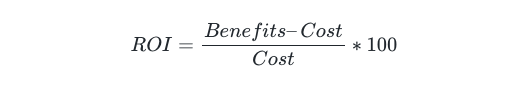 The formula for determining ROI is very simple. The benefits is what you gain from what you want to do and the Cost is what you need to invest to realize the gains. Figuring out the benefits is the tricky part. There are two types of benefits, financial gains and non-financial. You can put a price on the financial benefits, but not the non-financial ones and often the benefits are mixed together. You might need to deconstruct the benefits to be able to quantify them.